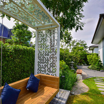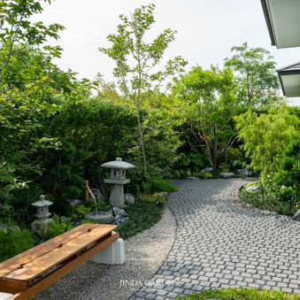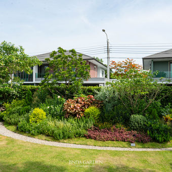เป็นการออกแบบพื้นที่สีเขียวให้เป็นเส้นโค้ง เพื่อเชื่อมต่อจุดทุกจุดให้กลายเป็นเส้นโดยไม่ขาดตอน โดยแบ่งสัดส่วนของเส้นโค้งให้มีความหลากหลายสี ด้วยการใช้ความแตกต่างของพื้นสีหินกรวด, พื้นสนามหญ้า, พื้นของพรรณไม้, พื้นของทางเดิน จะทำให้เกิดมิติของสวน ให้ต่อเนื่องกันอย่างลื่นไหลและสามารถใช้พื้นที่ของแต่ละส่วนได้อย่างลงตัว